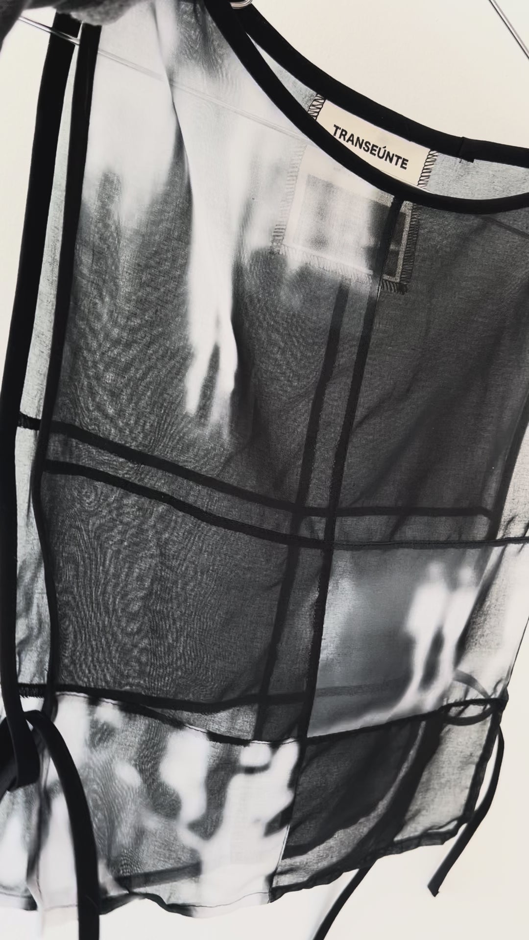 Cropped layer fotográfico en gasa translúcida 100% reciclado de botellas de plástico.