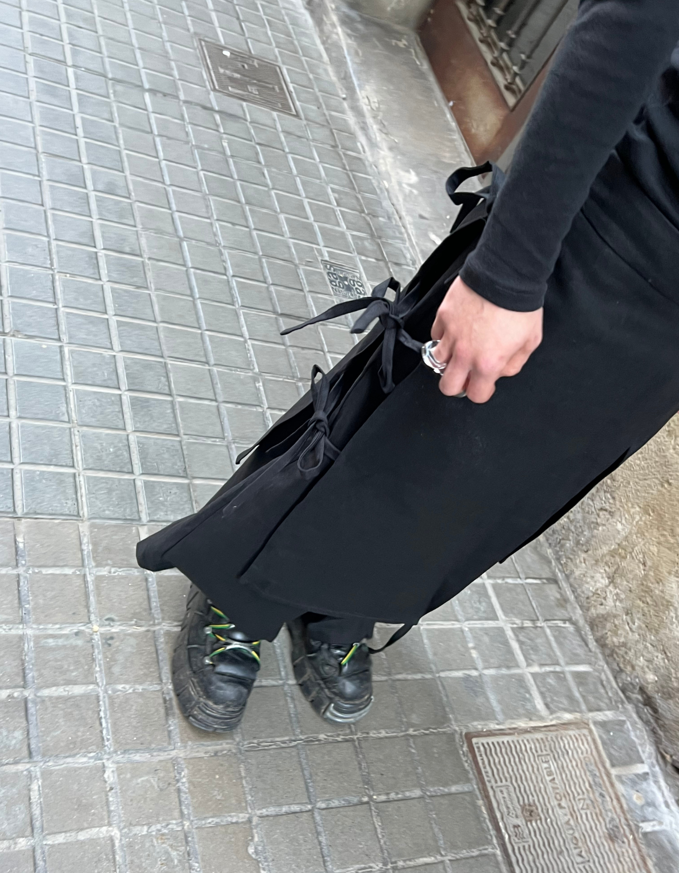 Pantalon 100 % algodón reciclado de uniformes militares con paneles delanteros y traseros que dan la apariencia de una sobre-falda.